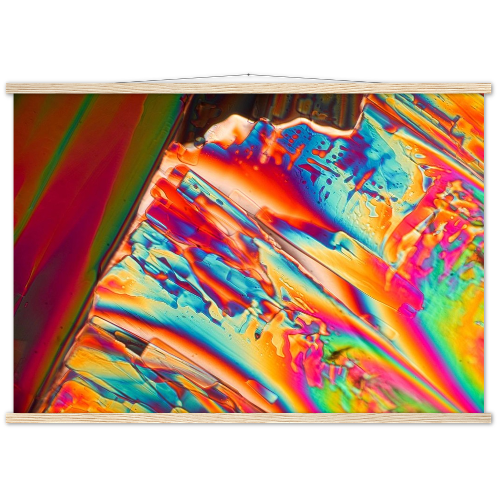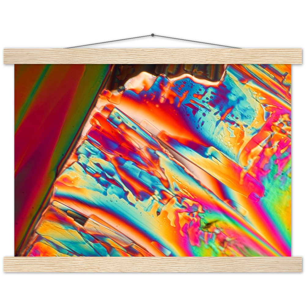 Ein hochwertiges Poster und ein wunderschöner Aufhänger. Jeder Aufhänger enthält vier Holzstäbchen, zwei, die die Oberseite des Drucks festklemmen, und zwei, die die Unterseite festklemmen, sowie eine hochwertige Baumwollschnur, die zur Farbe des Aufhängers passt. Starke Magnete halten dein Kunstwerk sicher fest und ermöglichen es dem Kunden, das Kunstwerk bei Bedarf zu wechseln.